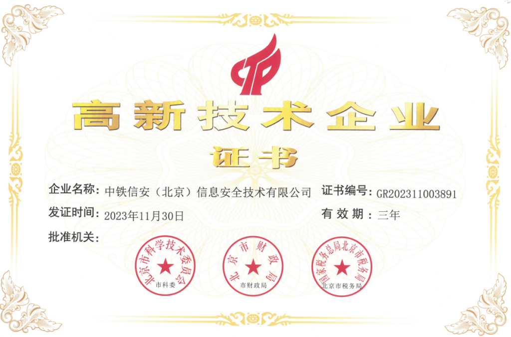 2023年11月,信安公司再次荣获由北京市科学技术委员会、北京市财政局、国家税务总局北京市税务局联合颁发的《高新技术企业证书》。 本次高新技术企业评审的通过,标志着信安公司在核心自主知识产权、科技成果转化能力以及成长性指标等方面再次获得国家级认可,并将对公司经营发展、品牌提升、技术市场推广产生积极影响。 未来,信安公司将继续秉承“开拓进取、勇于创新”的理念,坚持自主创新的发展道路,持续在隔离交换等安全领域开展技术研究与应用实践,助力信息安全产业繁荣发展。